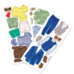 Balenie obsahuje obliekaciu postavičku, 3 hárky magnetických častí oblečenia, topánok a doplnkov a drevený podstavec.
